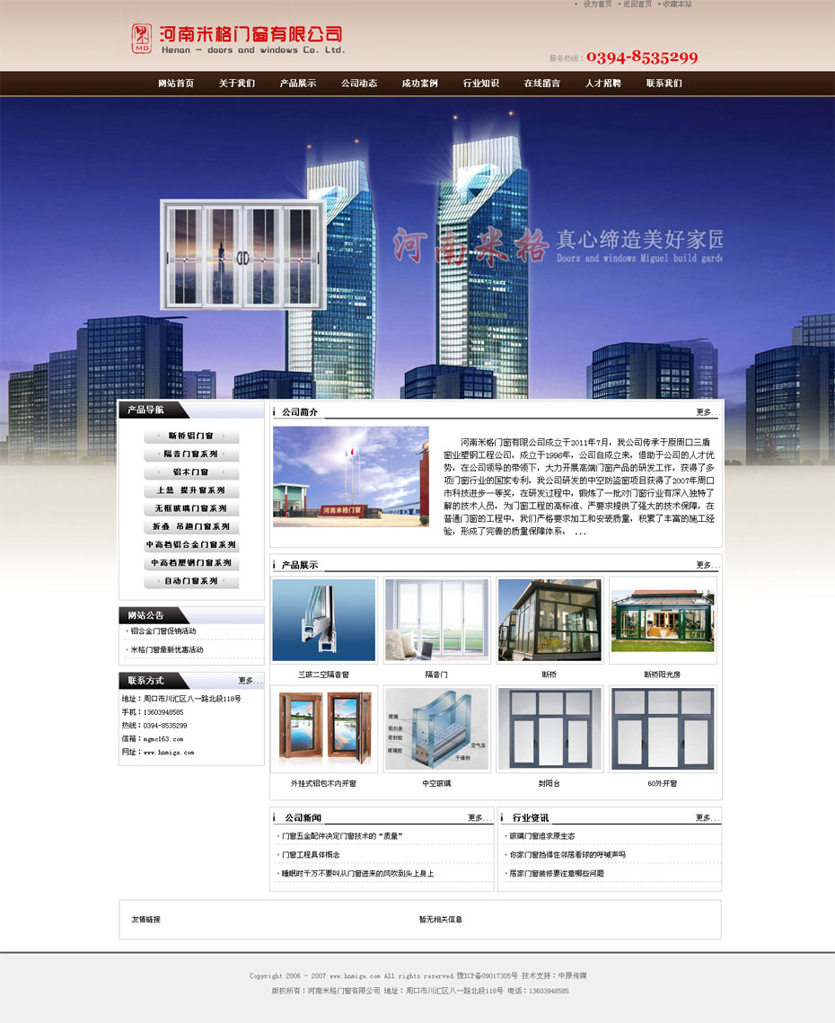 案例介紹:河南米格門窗有限公司成立于2011年7月,我公司傳承于原周口三盾窗業塑鋼工程公司,成立于1996年,公司自成立來,借助于公司的人才優勢,在公司領導的帶領下,大力開展高端門窗產品的研發工作,獲得了多項門窗行業的國家專利,我公司研發的中空防盜窗項目獲得了2007年周口市科技進步一等獎,在研發過程中,鍛煉了一批對門窗行業有深入獨特了解的技術人員