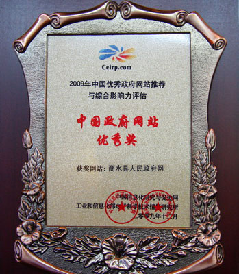 客戶商水政府網站榮獲2009年度中國優秀政府網站祝賀中原傳媒客戶商水縣人民政府網榮獲2009年度中國優秀政府網站